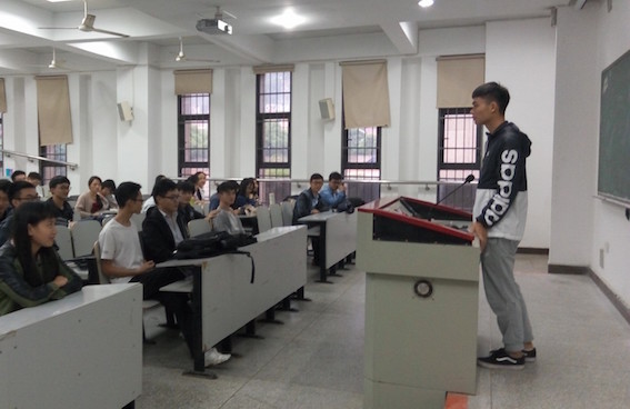 最後,化工一班班長付浩樾就當前國内外的形勢,分析了愛國的重要性。班長指出,當前國内正處于社會轉型時期,經濟增長放緩。近年來,中國周邊安全局勢又出現了一系列新問題。然後他以周恩來等人的典故鼓勵大家,現在正是國家需要的時候,要為中華之崛起而讀書,為實現偉大的中國夢而奮鬥。在場的同學們受到了鼓舞,也開始對自己如何愛國産生了一些新的思考。