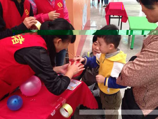 志願者分為7組,每天早上7點20準時在天馬公寓門口集合,經過約一小時的車程,8點40在科技館負責人組織分工下開始熱情地投入一天的工作。有的志願者扮成玩偶負責在入口處歡迎小朋友,有的在展台負責為小朋友講解,如“牛奶和洗潔精的神奇反應”“這隻氣球會爆炸嗎”“瓶中彩虹”等科學現象的原理,還有志願者負責幫助小朋友制作“有線電話”“飛去來器”等。