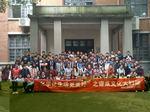 經過本次課桌文化大掃除活動,同學們真實地感受了作為一名衛生清潔員的辛苦,也感悟到了平時不應在課桌上亂寫亂畫的道理;其次,同學們熱心投身公益,為學校做出了力所能及的貢獻,也增強了自己的服務意識與弘揚了奉獻精神;與此同時,同學們在這次的活動中也貫徹了化工院“化學讓生活更美好”的宗旨,自己配制清潔劑,讓我們的校園更潔淨。在經過這次活動後,同學們也一定會在今後的學校生活中,更加重視學校公物的保護,成為一名文明的湖大人。 文/劉子烋,程睿