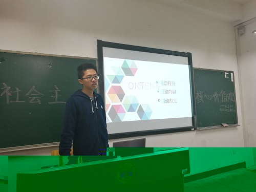 活動伊始,團支書着重為大家介紹了社會主義核心價值觀中的關鍵詞及其内在含義。他還從黨的十八大召開到現在為止,介紹了社會主義核心價值觀的提出與演變,并為同學們初步講解了社會主義核心價值觀在中國夢的實現與社會發展中的重要意義與作用。