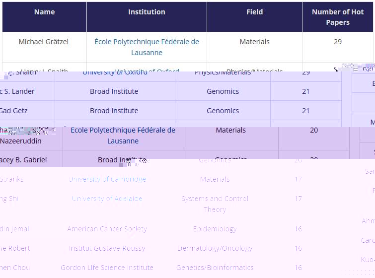 2017年11月15日,美國科睿唯安(Clarivate Analytics)在線公布了全球2017年“高被引科學家(2017 Highly Cited Researchers)”名單。通過對Webof Science數據庫近11年(2005-2015)論文分析,湯森路透對21個學科領域的論文對應年度的“他引次數”進行排序,排名在前1%的論文為該領域的“高被引論文”,這些論文的作者則入選該學科領域“高被引作者”。3538名高被引作者中,美國入選1600多人,排名第一。英國入選350人左右,排名第二。中國入選240人左右,排名第三。