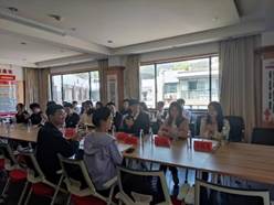 圖為 戈明敏、楊豔霞、何張龍同志作彙報以及雙方支部交流學習