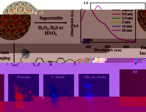 石墨烯納米材料有優異的機械、光學和電學性能,而且具有化學和熱穩定性。課題組利用薄層石墨烯有效的保護了銀納米粒子在不同環境中的優異性能,在高濃度的過氧化氫、硫化物甚至硝酸的存在下,顆粒的等離激元性能都能得到很好的保持。此外,通過表面炔基分子修飾,結合石墨殼層特異的拉曼信号還實現了對腫瘤細胞的低背景快速成像,提高了顆粒探針在生物醫學領域應用中的靈敏度和穩定性。進一步通過結合腫瘤靶向的核酸适配體,還實現了對腫瘤細胞和組織的靶向拉曼成像,對于癌症診斷具有重要的意義。