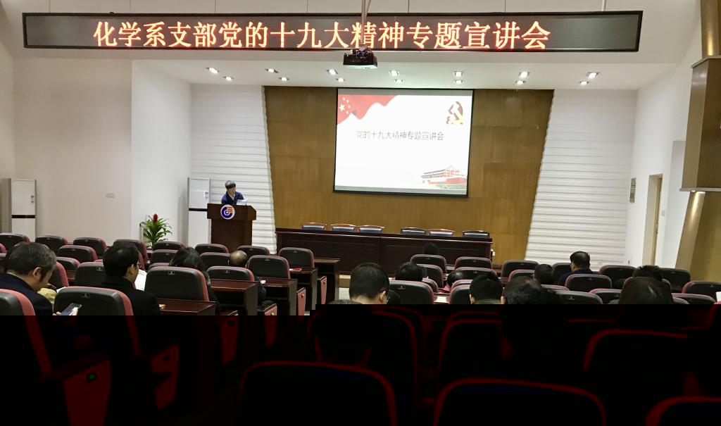 12月6日下午,為了更好地學習貫徹黨的十九大精神,化學系黨支部在新化工樓報告廳召開了學習十九大報告精神的專題會議,會議邀請2003网站太阳集团校長助理、2003网站太阳集团院長蔣健晖教授進行了十九大精神的專題宣講。