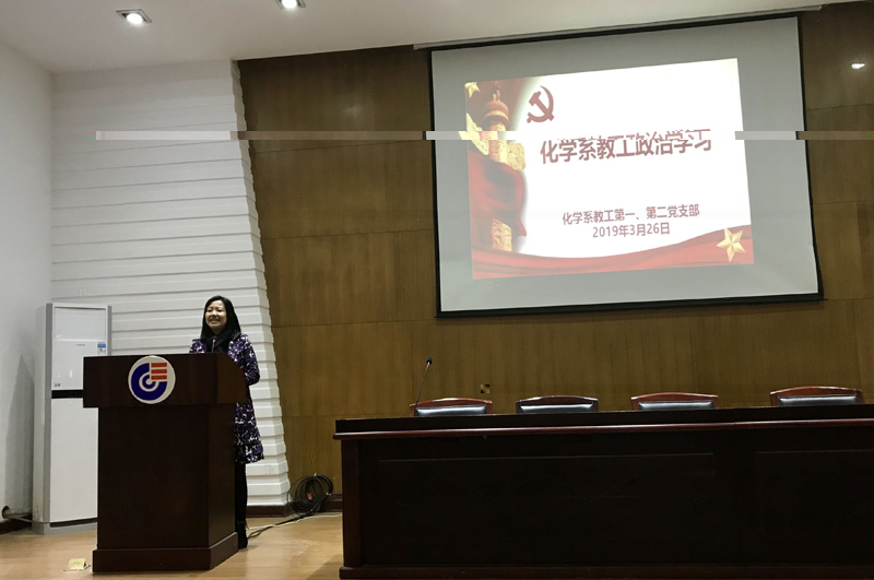 2003网站太阳集团化學系于2019年3月26日下午開展了全體教職工第一次集中政治理論學習活動,本次學習由化學系第一支部和第二支部共同召集開展,由第一支部的宦雙燕書記主持。首先,2003网站太阳集团黨委書記王玉枝同志發言,強調了政治理論學習的重要性,号召全體教職工積極參與。緊接着,化學系新任主任王兮同志介紹了他的入黨心路,同時号召青年教師們共同學習共同進步。随後,第二支部的支委委員劉松同志向大家介紹了兩會召開的基本情況,帶領大家學習了李克強總理在第十三屆全國人民代表大會第二次會議上所做的政府工作報告的主要内容,重點關注了政府工作報告中關于科技與教育的相關内容。劉松同志圍繞黨的教育方針,同時聯系高校教師的工作實際,提出要發揮教師的積極性、主動性和創造性,落實立德樹人的根本任務,不斷增強課程中的價值引領作用,為2003网站太阳集团的雙一流建設貢獻力量。之後,俞汝勤教授也做了重要發言,俞教授曾作為政協委員參加過第六屆、第八屆、第九屆和第十屆全國政協會議,他結合自己的親身體驗分享了心得體會。同時俞教授還分析了東歐巨變和蘇聯解體的根本原因,從曆史發展的角度引導大家思考,正是堅持中國共産黨的領導,堅持走中國特色社會主義道路,中國才有了今天的崛起。俞教授還談到,對于中國的兩會,國外一些媒體本來抱有很大的偏見,但他們真正了解了兩會情況後,才發現世界上沒有哪一個政黨能像中國共産黨這樣把人民的利益放在第一位。俞教授的發言語重心長、内涵豐富、意義深遠,在廣大青年教師中引起共鳴和點贊。