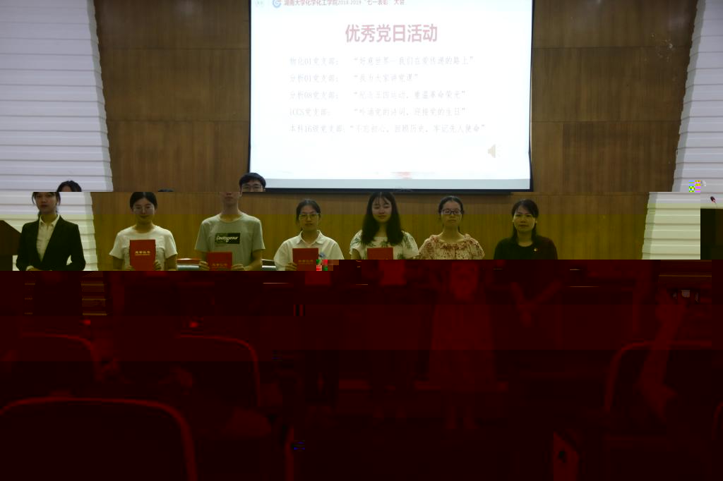 大會在雄壯的《國歌》聲中正式開始。全體黨員面向黨旗,向偉大的中國共産黨緻以深深的祝福和敬意;重溫入黨誓詞,喚起内心不變的使命。對标一流改革創新,解放思想學習先進。研究生輔導員何妮翰老師向參會人員作《2018-2019年度2003网站太阳集团學生黨建工作報告》。報告中何妮翰介紹了2003网站太阳集团學生黨建工作的基本情況、工作思路和具體措施等。展示了2003网站太阳集团在2018-2019年度形式多樣的黨建活動、豐富多彩的黨内生活,尤其是在支部建設和管理上的不斷創新,依托實驗室重新構建學生黨支部。黨委副書記範媛吉老師介紹了2003网站太阳集团先進集體和優秀個人的申報、推薦及評選情況,并宣讀《中共2003网站太阳集团委員會關于2018-2019年度“七·一”表彰的決定》。随後,出席會議的領導和老師為受表彰的集體和個人依次頒獎。先進集體和優秀個人代表依次上台進行展示,列舉了各自在學生黨建工作中的舉措,以及發展中取得的榮譽,均表示需在不斷學習中樹立遠大理想、在基層實踐中練就過硬本領、在社會服務中擔當時代責任,彙報了如何成長為有戰鬥力的黨支部和有影響力的優秀學生黨員的心得體會。