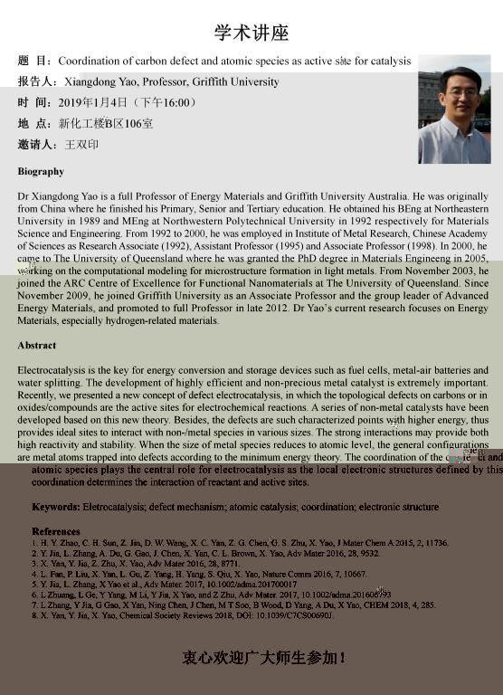 2019年1月4日格裡菲斯大學姚向東教授學術報告會