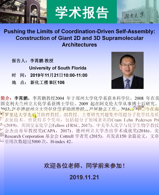 2019年11月21日南佛羅裡達大學李霄鵬教授學術報告會