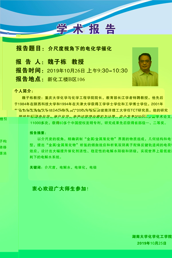 2019年10月26日重慶大學魏子棟教授學術報告會